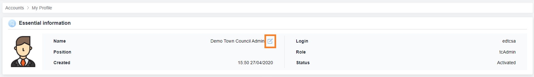 2. Click on the edit button beside Name