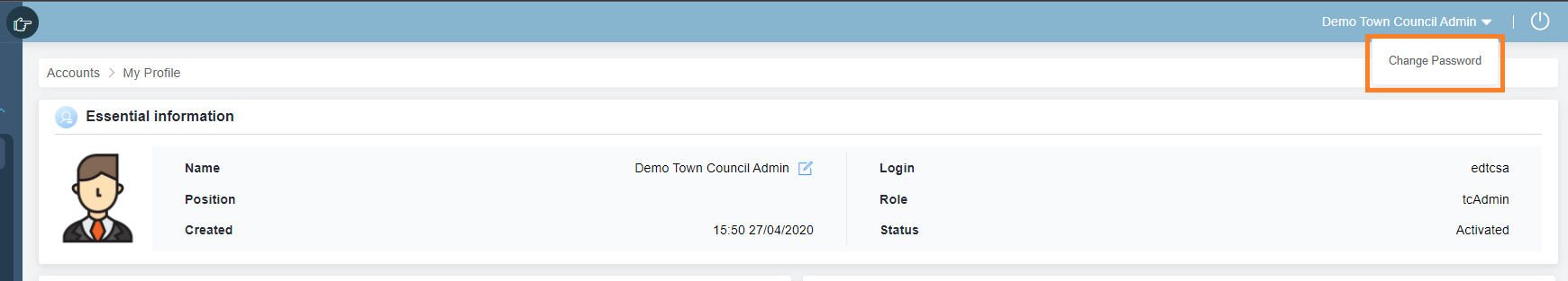 1. Click on "Accounts" menu followed by "My Profile" menu
