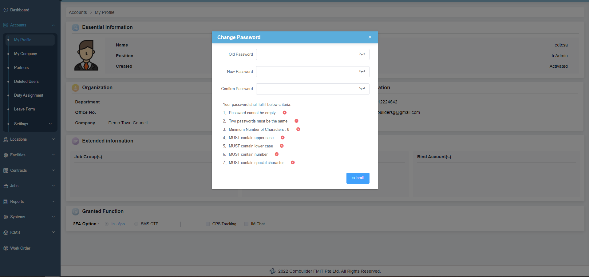 3. Input your Old Password and thereafter your preferred New Password twice based on the password criteria as shown